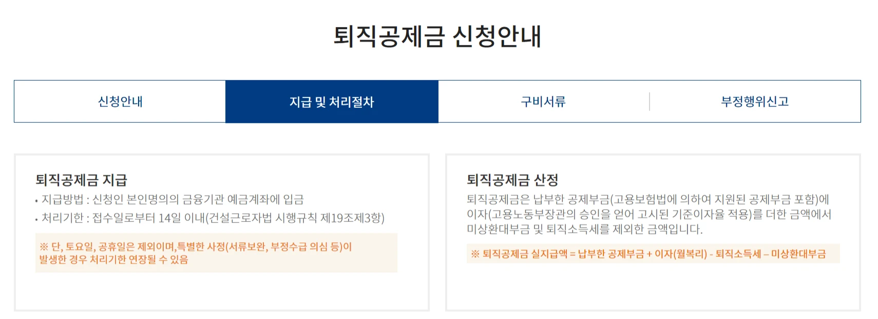 - 건설 현장에서 일정 기간 일한 후 퇴직 시 수령 가능
